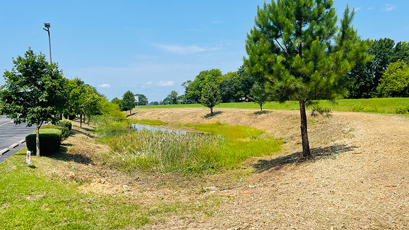 Following the initial land restoration, the retention pond has been maintained by our land management team for more than five years.