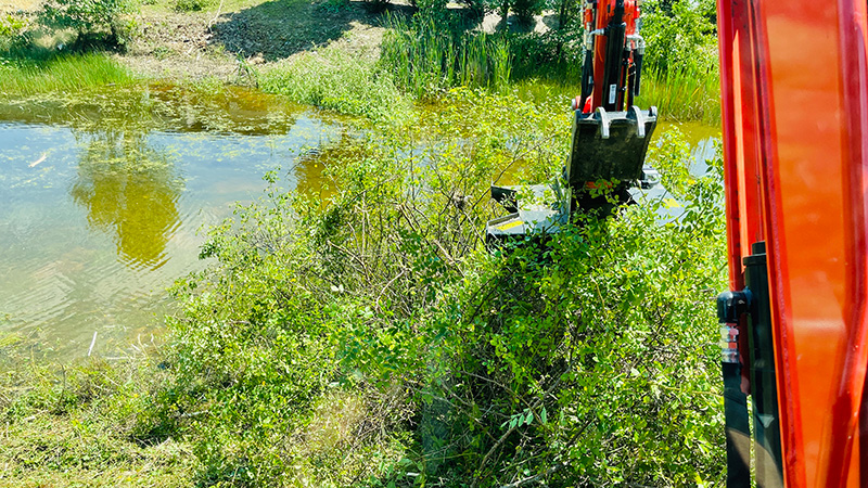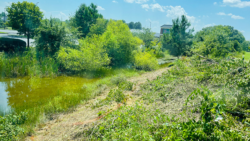 All unmanaged scrub brush and unnecessary trees were professionally cleared from the pond banks.