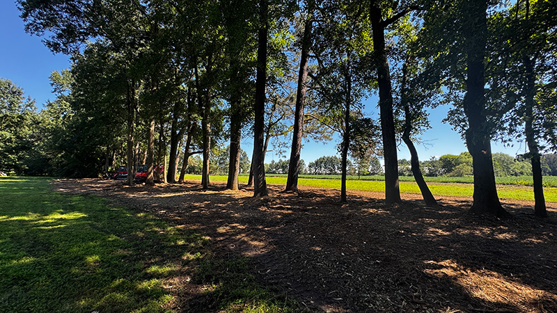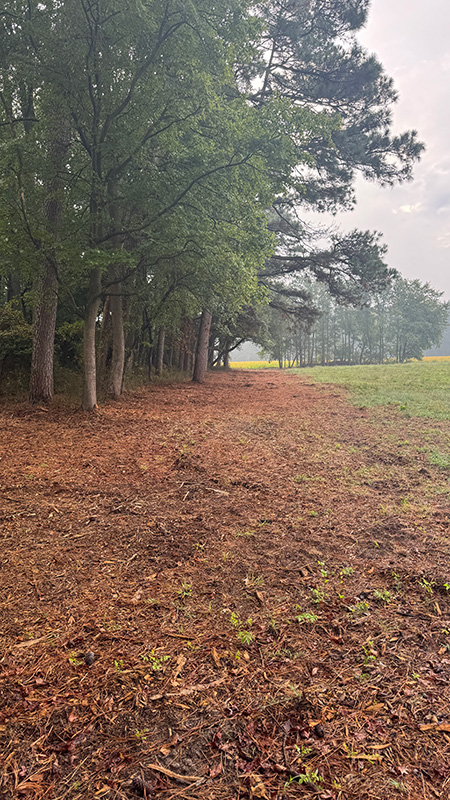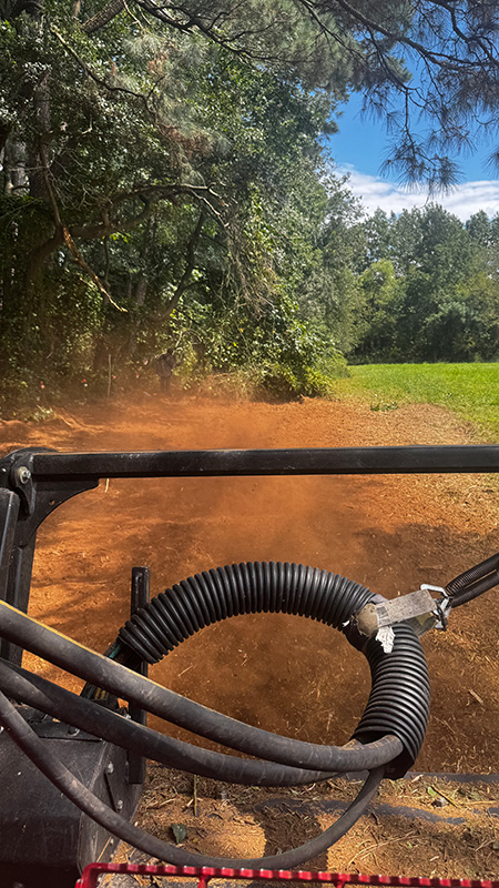- Road entrance clearing — Removed low-hanging branches and pushed the overgrown tree and briar line back approximately 20–25 feet, eliminating vehicle damage and opening up a clean, welcoming farm entrance.